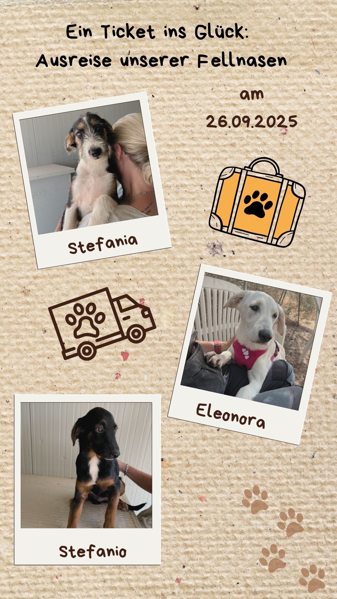 Am 26.09.2025 war es soweit: Stefania, Stefanio und Eleonora durften das Tierheim in Olbia verlassen und in ihr neues Leben starten.